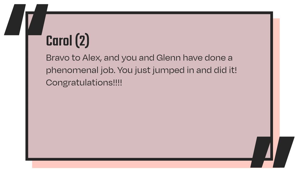 Thank you, Alex, for your tenacity, humour, and generosity. Your creativity continues to inspire us!